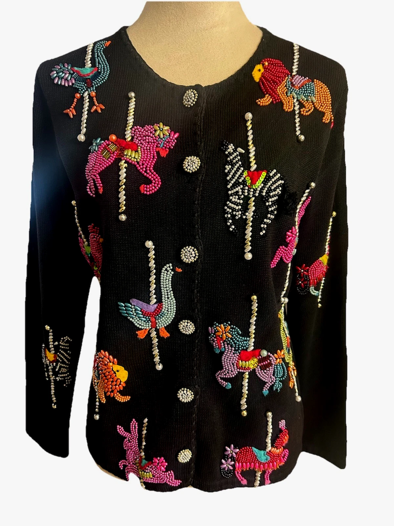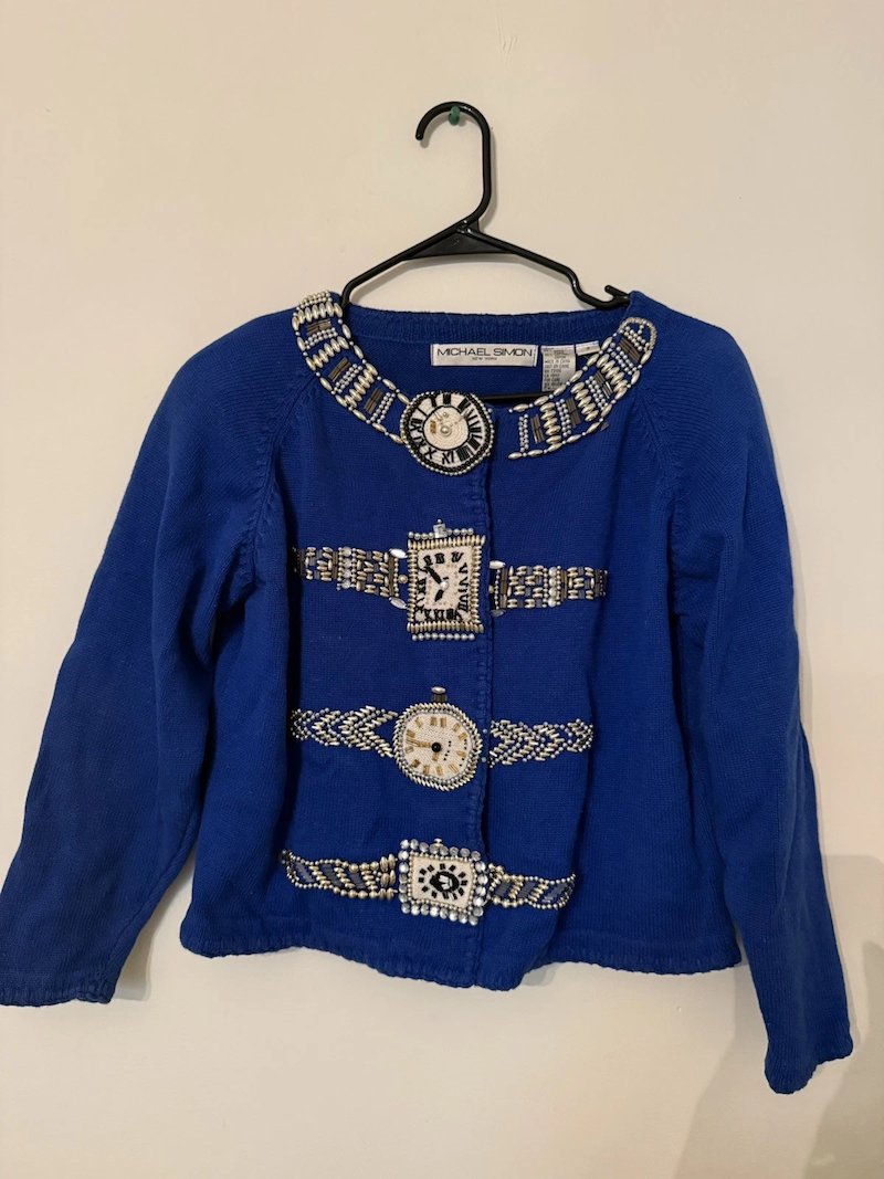 Strangely, I don't have a Christmas-themed Michael Simon cardigan yet. This one is my top pick.