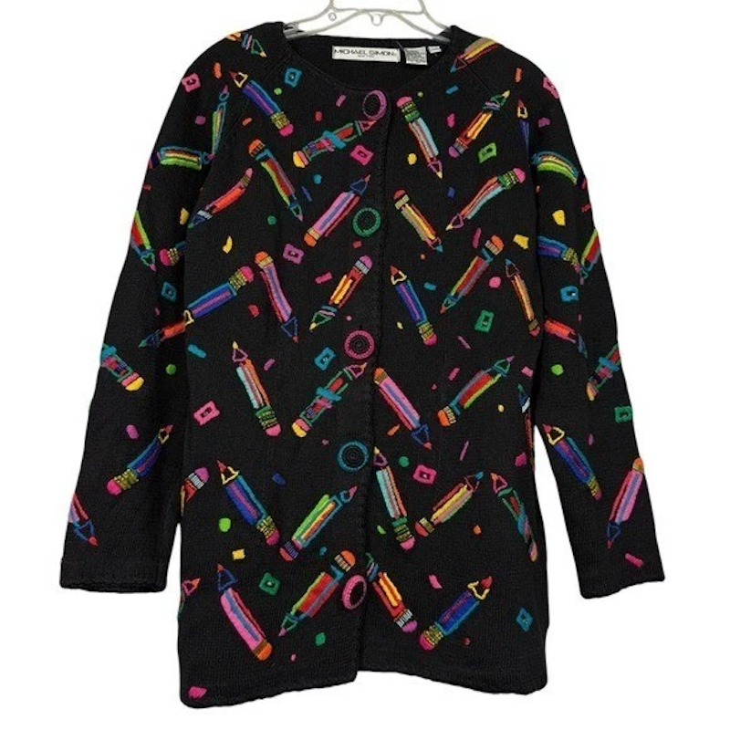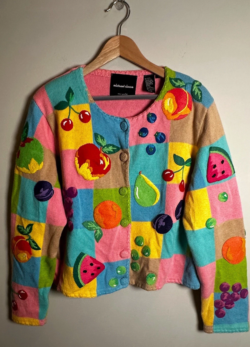 A few weeks ago I made a list of my favorite unhinged Michael Simon sweaters. They’re sweaters I admire from afar but probably wouldn’t wear due to their unchecked insanity.