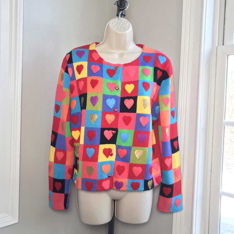 Oh, but this one is fun too. I love Valentine's Day (see also: my vintage Valentine card collection). It's a cute holiday. Hearts are cute. Colorful hearts are even cuter. Add in the checkerboard pattern, and you have my ideal cardigan.