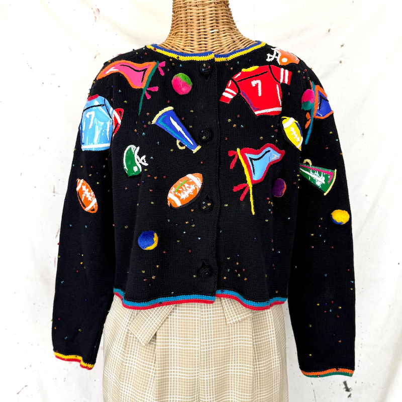 All of this to say, I would totally wear this sports-themed cardigan. It gives “I don’t really know what’s going on, but I’m going to have fun anyway.” I like it.