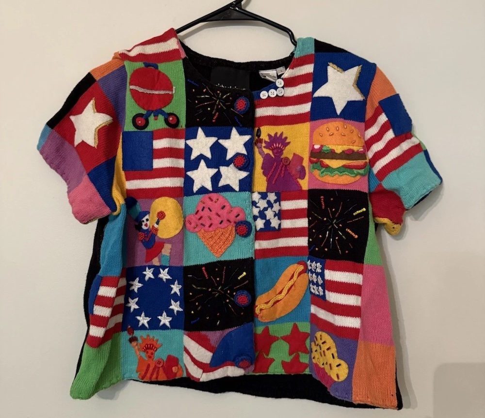 Flag or not, I think this sweater is pretty fun. The hot dogs, the hamburgers, the ice cream.