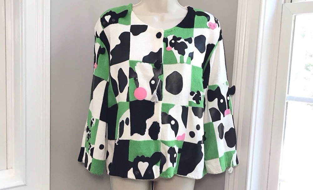 And this cow print sweater recently sold for $550. I’m insanely jealous of whoever was able to add that to their collection.