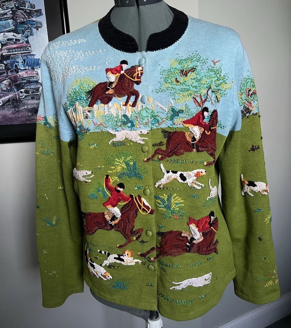 What in the Downton Abbey is this? A damn fox hunting sweater?