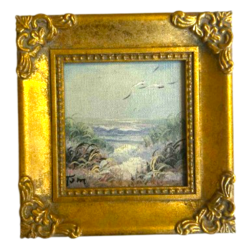 Notes: Another Savers junk bag find. This thing is small, only a couple of inches square, but it's a nicely done original painting - a rare find at the thrift store.