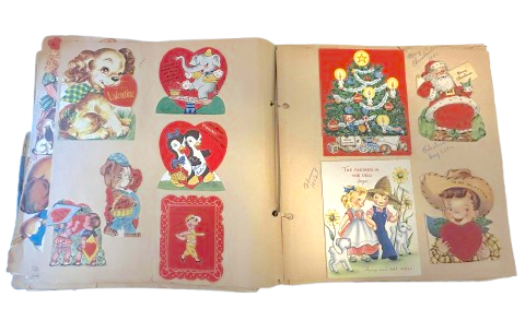 I enjoyed digging through the bin of old Happy Meal toys (and I did end up buying a Furby for a buck). But the best thing I came across - and did end up buying - was a scrapbook collection of old cards from the 1940s and 1950s: